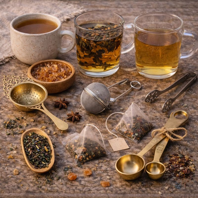 Zubehör für die Zubereitung und den Genuss von Tee.