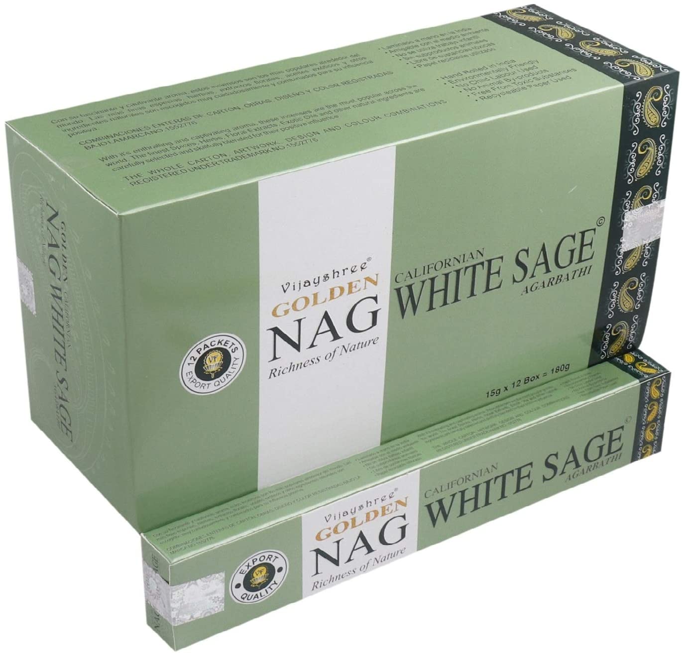Der Golden Nag White Sage Weihrauch ist in zwei Varianten erhältlich: Einzelpackung (1 Päckchen mit ca. 12-15 Stäbchen) oder Big Pack (12 Päckchen mit je ca. 12-15 Stäbchen). Wählen Sie die Größe, die am besten zu Ihren Bedürfnissen passt, und erleben Sie die Reinigungskraft von weißem Salbei in seiner reinsten Form.